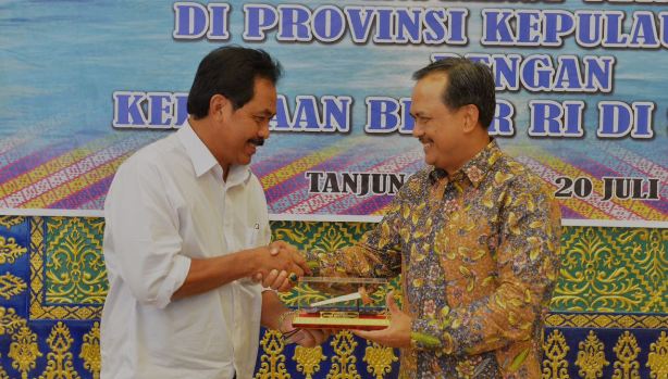 Hal itu disampaikan Nurdin saat menerima rombongan Dubes Indonesia untuk Indonesia Ngurah Swajaya di Gedung Daerah, Tanjungpinang, Rabu (20/7/2016) pagi. Gubernur pun memanggil seluruh FKPD dan sejumlah SKPD Pemprov Kepri, dalam pemaparanya.