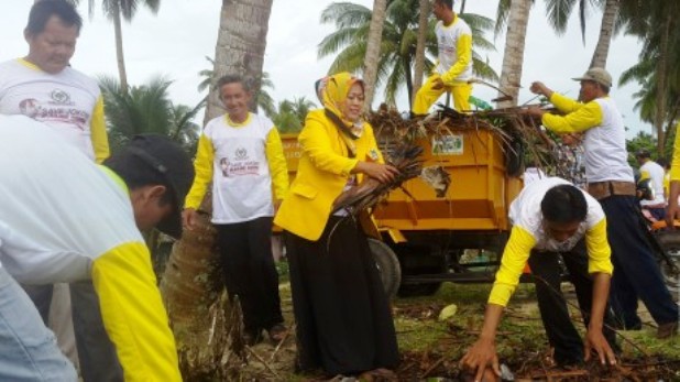 WARTAKEPRI.co.id, NATUNA – Ratusan kader Partai Golkar Kepulauan Natuna, Provinsi Kepulauan Riau meggelar aksi gotong royong membersihkan sampah di pantai tanjung, Ranai, Natuna, Minggu (27/11/2016). Wakil Bupati Natuna, Hj. Ngesti Suprapti membersihkan sampah di pinggiran pantai Tanjung, Ranai Natuna