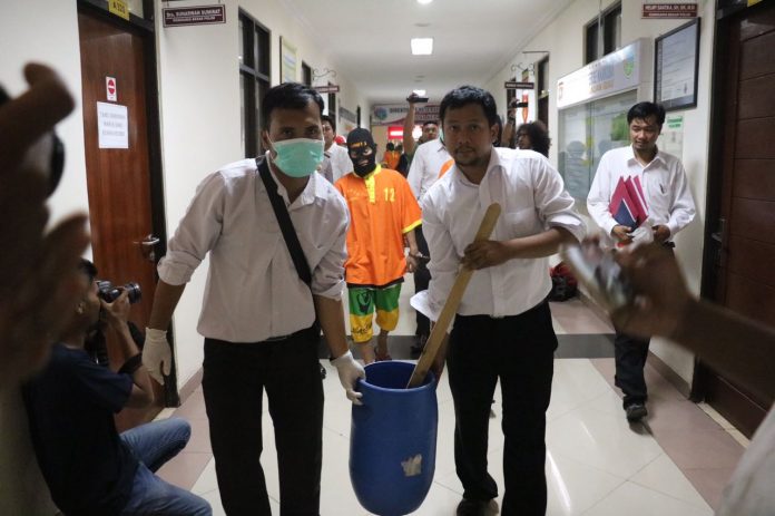 Kemudian anggota Ditresnarkoba mendatangi tempat tersebut melihat dari arah yang berlawanan ada 1 (satu) Orang laki-laki yang sedang dibonceng sepeda motor ada membawa kotak es batu yang diletakkan diatas paha sebelah kanan dan ciri-ciri nya sama dengan yang diinformasikan oleh Masyarakat.