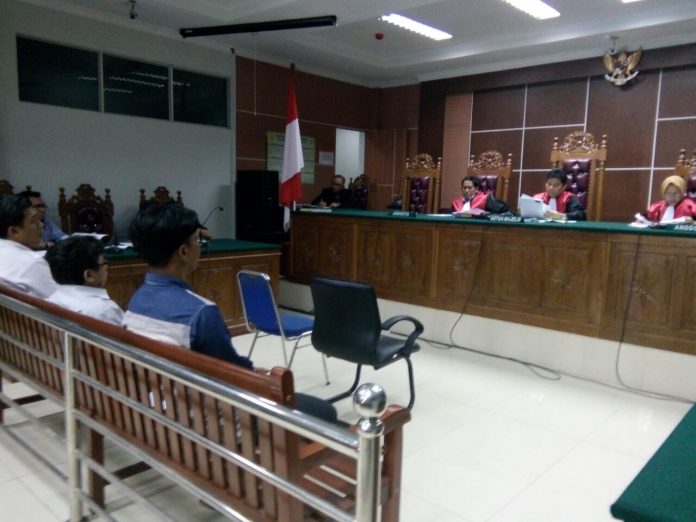 Terlihat dalam ruang persidangan hadir Kabag Hukum Tanjabtim, Marolop Simanjuntak, Camat dan staf pegawai Pemkab Jambi. Persidangan ini dipimpin ketua majelis hakim, Jasael.Manulang SH, MH didampingi hakim anggota M.Chandra SH dan Roza SH, Kamis (27/7/2017) di Pengadilan Negeri ( PN ) Batam.