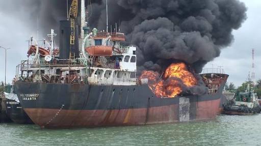 Foto: Dokumentasi, bukan kejadian saat terbakarnya kapal di PT ASL Shipyard. Foto adalah Kapal terbakar di kawasan Pelabuhan Batuampar Batam, yang terjadi beberapa bulan lalu.