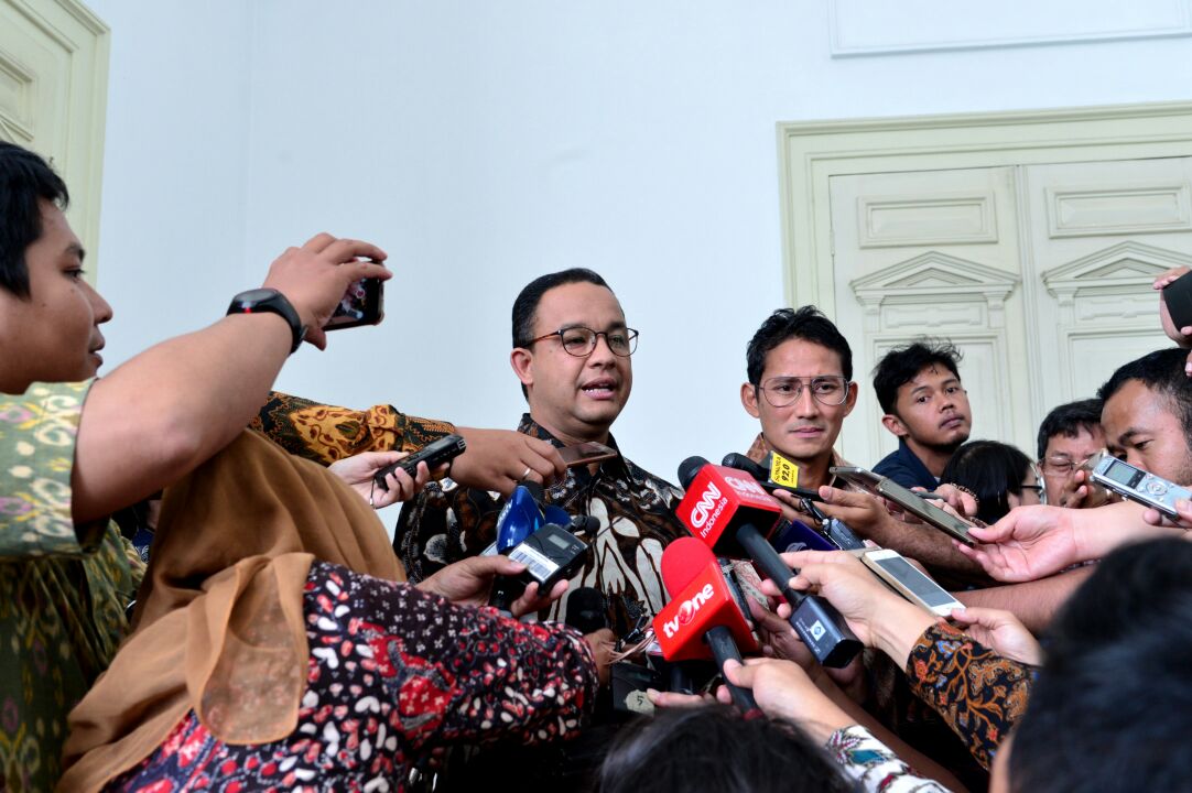 Usai pertemuan yang berlangsung selama satu jam, Anies menjelaskan kepada para jurnalis bahwa pertemuan dengan Kepala Negara membahas setidaknya enam topik, utamanya terkait persiapan Asian Games 2018.