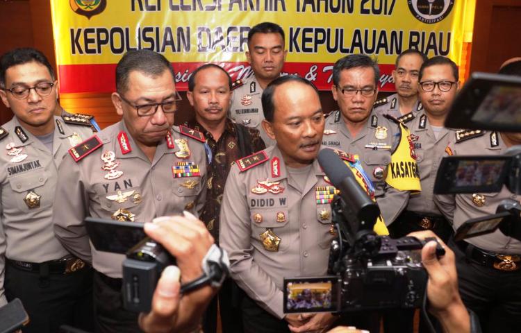 ” Oleh karena itu, saya atas nama seluruh jajaran Kepolisian Daerah Kepulauan Riau menyampaikan permohonan maaf yang sebesar-besarnya kepada seluruh masyarakat Kepulauan Riau,” papar Kapolda Kepri, Irjen Pol Didid Widjarnadi, Kapolda Kepri didampingi Brigjen Pol Yan Fitri Halimansyah, Wakapolda Kepri beserta jajaran lainnya di Mapolda Kepri, Jumat (29/12/2017).