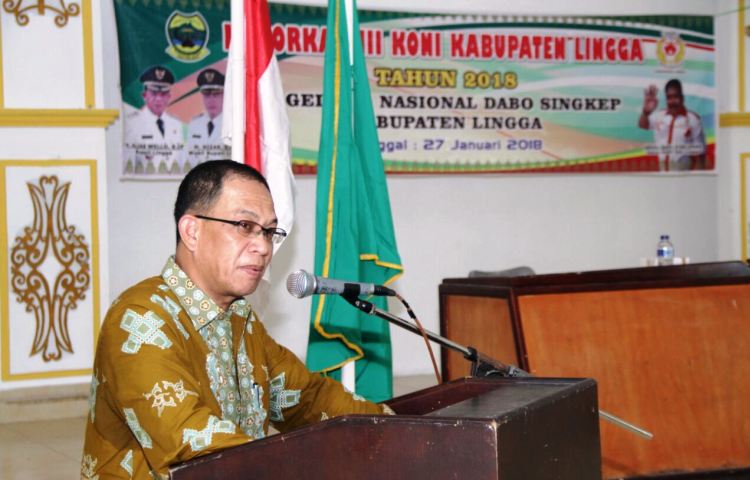 WARTA KEPRI .co.id, LINGGA – Bupati Lingga H Alias Wello Buka secara Resmi Musorkab III Koni,Sabtu,di Gedung Nasional dabo singkep.ikut Hadir dalam acara tersebut ketua Koni Kabupaten Lingga, Kasatlantas, Anggota DPRD Kabupaten Lingga, camat singkep barat, camat singkep selatan, sekcam selayar, dan camat singkep pesisir, Sabtu (27/1/2018).