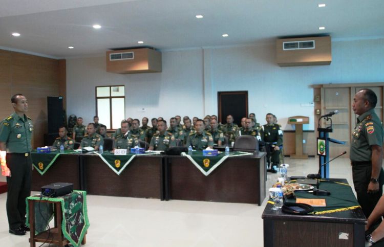 WARTAKEPRI.co.id, TANJUNGPINANG – Danrem 033/WP, Brigjen TNI Gabriel Lema, S.Sos memimpin entry breifing Pengawasan dan Pemeriksaan Inspektorat Jendral TNI bertempat di Makorem 033/WP Tanjungpinang. Selain Tim Itjen TNI, entry briefing tersebut juga dihadiri oleh para Kasi Korem 033/WP, Dansat jajaran, para Kabalakrem serta para perwira Korem.
