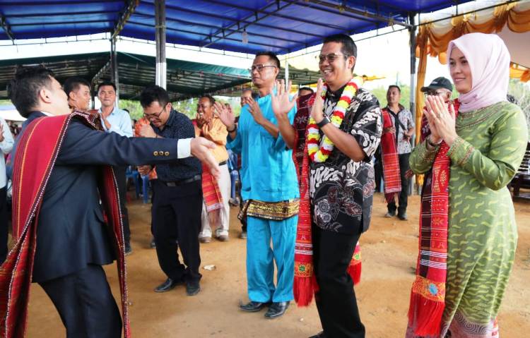 Dalam kesempatan tersebut, Bupati Bintan Apri Sujadi didampingi Ketua TP PKK Kabupaten Bintan Ibu Deby Maryanti terlihat diberikan Kain Ulos Adat Suku Batak. Bupati Bintan juga didaulat untuk berbaur bersama sejumlah tokoh agama dengan menarikan tarian tor-tor.