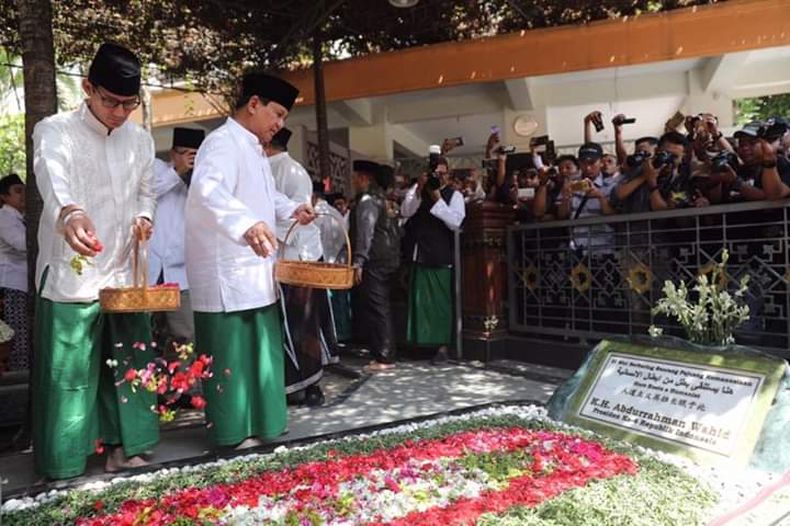 Usai apel, Prabowo dan Sandiaga melanjutkan napak tilas amanah resolusi jihad dengan berziarah ke makam ulama besar di Jombang.
