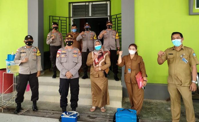 WARTAKEPRI.co.id, BINTAN – Polres Bintan melalui Polsek Bintan Timur yang dilaksanakan oleh Kapolsubsektor Bintan Pesisir, Iptu Masnur di dampingi oleh Bhabinkamtibmas Desa Kelong Bripka Eko Edi, kawal vaksin dari Dinas Kesehatan Kabupaten Bintan, kepada Puskesmas Desa Kelong Kecamatan Bintan Pesisir Kabupaten Bintan.