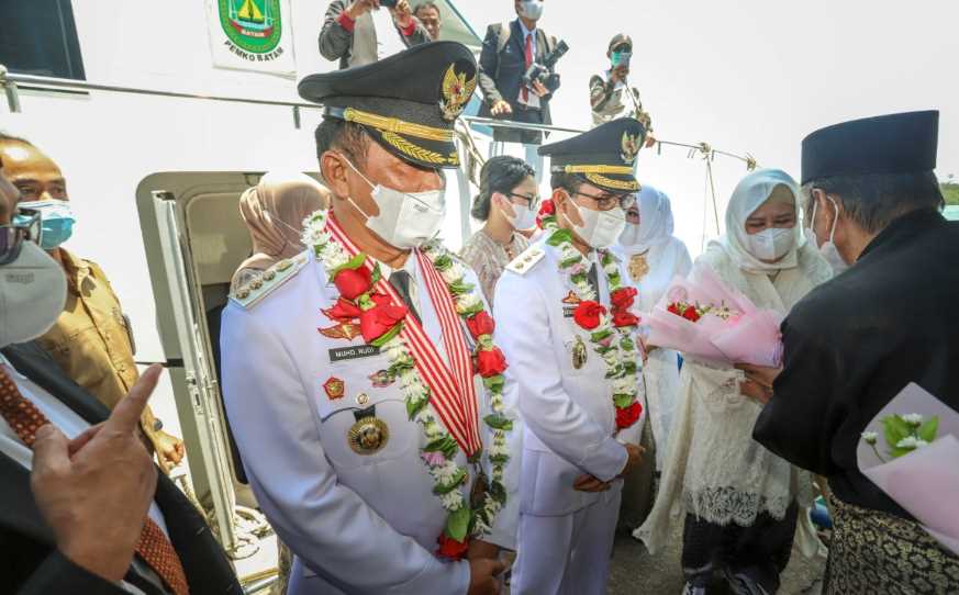 Bersama Ibu Wali Kota Batam, Marlin Agustina Rudi yang juga Wakil Gubernur Kepri dan Ibu Wakil Wali Kota Batam, Erlita Sari Amsakar, kedatangan disambut dengan pemberian kalungan bunga dan bunga tangan, tabuhan kompang, selanjutnya LAM menaburkan beras kunyit, dilanjutkan silat dengan diiringi musik Nafiri, bertempat di Pelabuhan Feri Provinsi Kepri, Nongsa, Senin (15/3/2021).