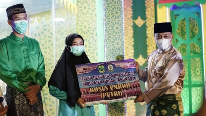 WARTAKEPRI.co.id, LINGGA – Bupati Lingga Muhammad Nizar dalam sambutannya mengucapkan rasa bangga kepada seluruh peserta yang telah ikut bertanding, meski disuasana pandemi namun tetap sangat mengikuti perlombaan yang diterapkan dengan tetap mematuhi protokol kesehatan.