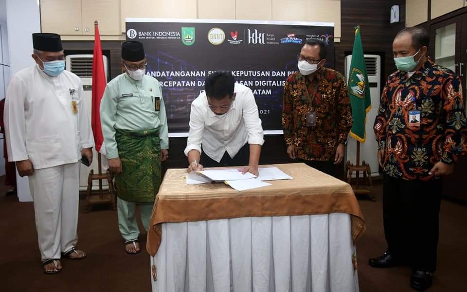 Hal itu ditegaskan Kepala Kantor Perwakilan (KPw) Bank Indonesia (BI) Kepri, Musni Hardi Kasuma Atmaja saat penandatanganan Surat Keputusan (SK) Wali Kota Batam dalam pembentukan Tim Percepatan dan Perluasan Digitalisasi Daerah (TP2DD) di Kantor Wali Kota Batam, Jumat (19/3/2021).