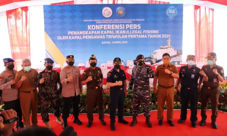 “Kapal Pengawas Perikanan Orca 03 telah melakukan penangkapan terhadap KG 9307 TS dan KNF 7727 di Laut Natuna Utara pada Senin (29/3/2021),” terang Sekretaris Jenderal KKP, Antam Novambar yang juga Plt. Direktur Jenderal Pengawasan Sumber Daya Kelautan dan Perikanan (PSDKP) dalam Konferensi Pers yang dilaksanakan di Pangkalan PSDKP Batam pada Senin (5/4/2021).