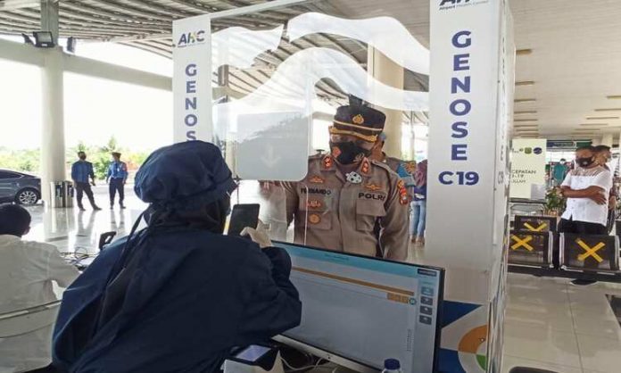 Selain pengecekan pos, Kapolres Tanjungpinang juga melaksanakan pengecekan tempat rapit tes GeNose dan Kapolres ikut melakukan tes GeNose dengan hasil tes Negatif saat di Bandara RHF Tanjungpinang