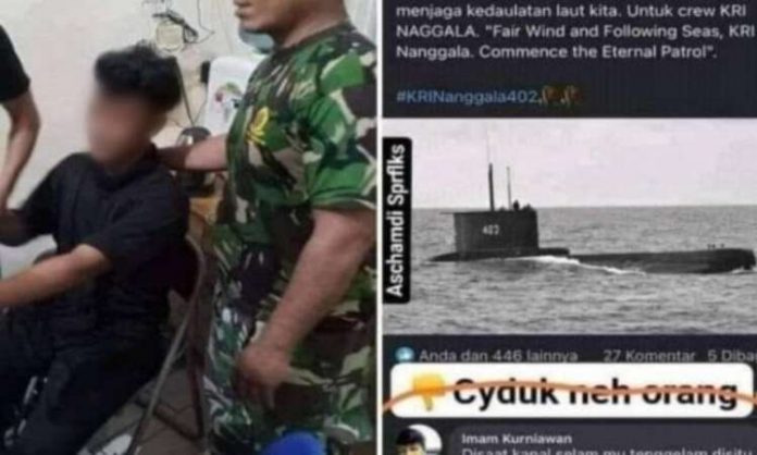 Sebelumnya, pada tanggal 28 April 2021, tersangka diperiksa oleh Pangkalan TNI Angkatan Laut (Lanal) Kendari terkait komentar tak senonoh di media sosial facebook soal gugurnya 53 awak KRI Nanggala-402. Bahkan selain memberi komentar tak senonoh kepada para awak KRI Nanggala-402, tersangka juga berkomentar asusila kepada para istri 53 orang prajurit terbaik Hiu Kencana itu.
