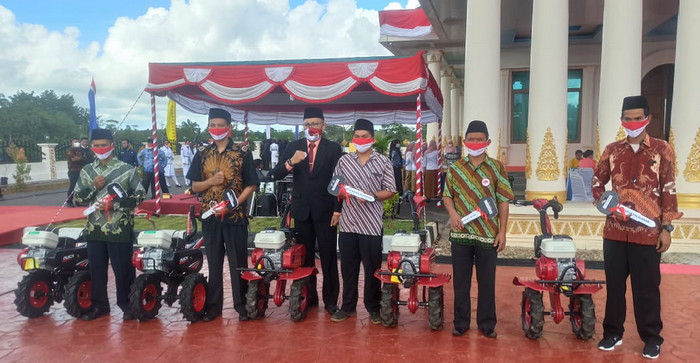 WARTAKEPRI.co.id, NATUNA – Usai upacara momentum peringatan HUT RI Ke-76, Dinas Pertanian Kabupaten Natuna menyerahkan bantuan Alat dan mesin pertanian (Alsintan) dari Dirjen Prasarana dan Saran Pertanian (PSP) Kementerian Pertanian RI melalui E-Proposal Kementerian Pertanian RI Tahun 2021. Penyerahan dilakukan langsung oleh Bupati Natuna Wan Siswandi di halaman Gedung Daerah, Jalan Batu Sisir Bukit Arai, Selasa (17/8/2021).