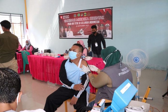 “Vaksinasi merdeka ini merupakan vaksinasi Serentak Pada 96 Titik di Seluruh Indonesia” dengan Sasaran siswa dan siswi, pengurus sekolah, dan masyarakat,”ucap AKBP Arief.