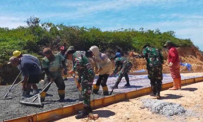 ”Semua anggota satgas dan warga terus bekerja tak mengenal lelah. Dari pagi hingga sore gotong royong terus dikebut. Selain waktu yang terbatas tentunya warga juga segera ingin dapat menikmati jalan yang dibangun.” katanya.
