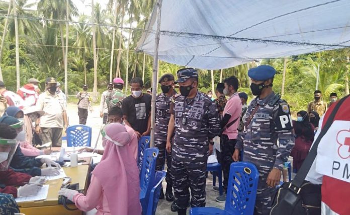 WARTAKEPRI.co.id, ANAMBAS – Komandan Pangkalan TNI Angkatan Laut Tarempa Letkol Laut (P) Yovan Ardhianto Yusuf, S.E., M.Tr. Opsla bersama Forkopimda KKA mendampingi ketua PMI Kepri secara langsung hadir dalam kegiatan penyerahan sejumlah bantuan sembako dan alat keselamatan berlayar kepada masyarakat RT. Pemutus dusun Nokok desa Munjan Kecamatan Siantan Timur Kabupaten Kepulauan Anambas dan pendistribusian Bantuan Covid-19 kemudian dilanjutkan dengan pelaksanaan Vaksinasi.