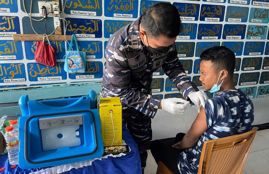 WARTAKEPRI.co.id, DABO SINGKEP – Personel Balai Pengobatan (BP) Pangkalan TNI AL (Lanal) Dabo Singkep tidak mengenal lelah dalam melaksanakan Serbuan Vaksin Maritim, kali ini vaksinasi dilaksanakan di Lembaga Pemasyarakatan (LP) Kelas III Kel. Dabo Kec. Singkep Kabupaten Lingga, Selasa (02/11/2021).