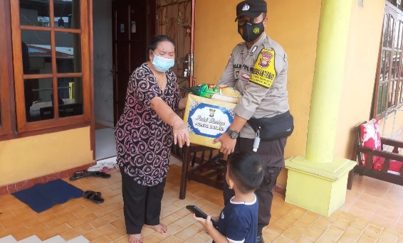 BATAM – Bhabinkamtibmas kel Lubuk baja Kota Bripka danu melaksanakan kegiatan kunjungan dalam rangka menyalurkan bansos sembako peduli berbagi Polresta Barelang di jl kangkung no 54 blok 3 kelurahan Lubuk Baja kota kecamatan lubuk Baja Sabtu (6/11/2021).