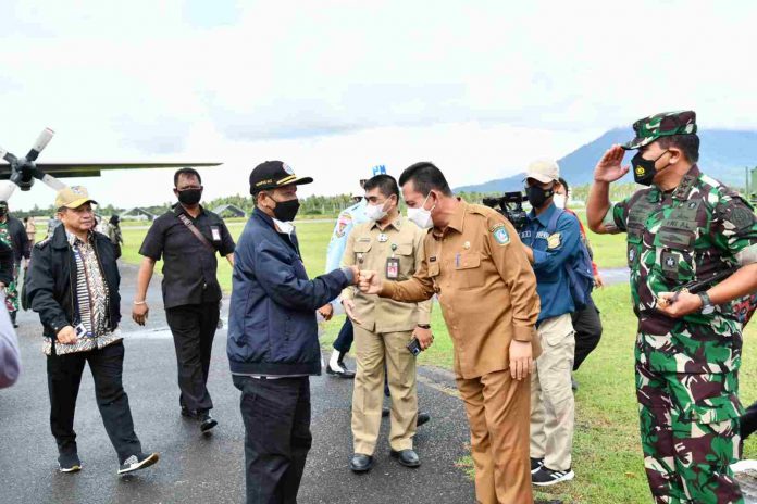 Gubernur terbang ke negeri di Ujung Uara Indonesia menggunakan Pesawat Casa NC 212-200 milik TNI Angkatan Udara dan mendarat di Bandara Ranai, Raden Sadjat untuk menyambut kedatangan dua Menteri di Kabinet presiden Jokowi- Maruf tersebut.