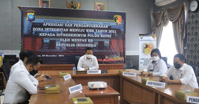 WARTAKEPRI.co.id, BATAM – Direktorat Reserse Kriminal Umum Polda Kepri dan Direktorat Intelijen Keamanan Polda Kepri meraih predikat Zona Integritas (ZI) Wilayah Bebas Korupsi (WBK) dari Kementerian Pendayagunaan Aparatur Negara Reformasi Birokrasi (KemenPAN-RB) dalam acara apresiasi dan penganugerahan Zona Integritas tahun 2021.