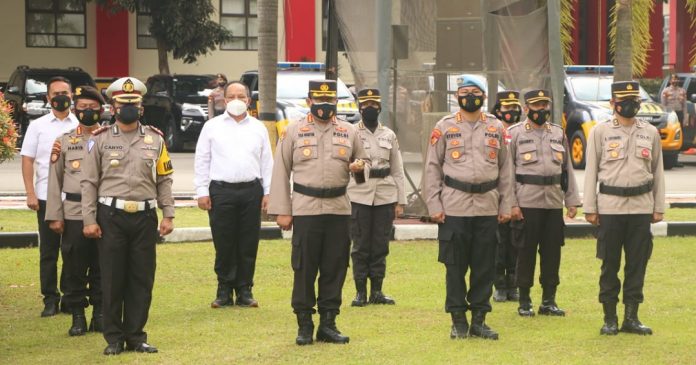 WARTAKEPRI.co.id, BATAM – Kapolresta Barelang Kombes Yos Guntur menghadiri Apel Gelar Pasukan Operasi Lilin Seligi 2021 di Lapangan Upacara Polda Kepri, Kamis (23/12/2021).