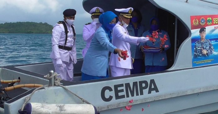 Tabur bunga yang dilaksanakan Lanal Dabo Singkep tersebut menggunakan dua kapal patroli di Laut Serak Kabupaten Lingga yang sempat dijadikan Pangkalan Aju pada 1964 lalu.