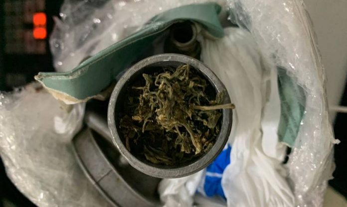Setelah dibuka, petugas mendapati karburator kendaraan yang disisipi dengan daun-daun hijau kering yang diduga merupakan ganja/marijuana sebanyak 26 gram.