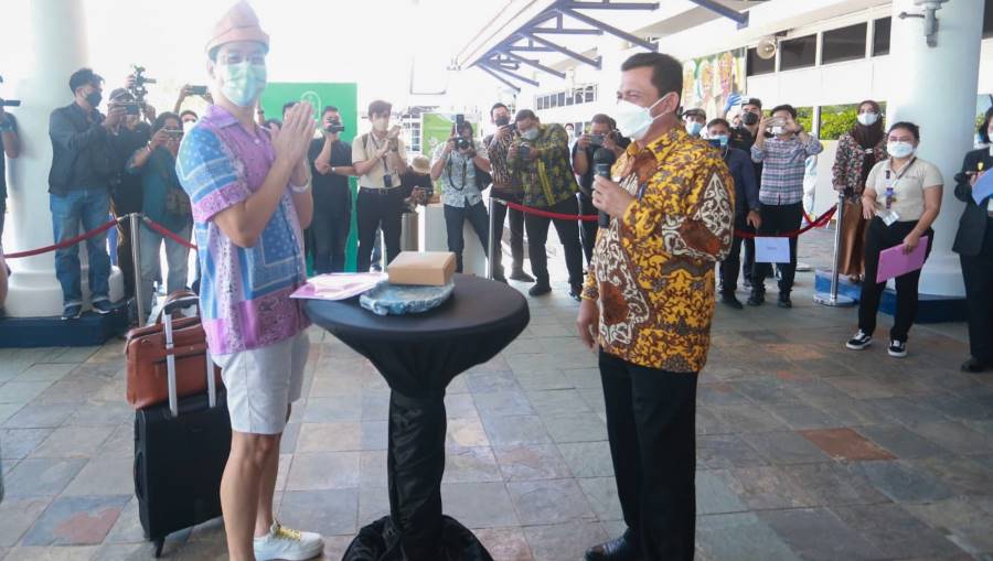Sebanyak 35 orang wisatawan perdana asal Singapura tiba di BBT sekitar pukul 11.00 WIB dengan penerapan protokol kesehatan yang ketat. Para wisatawan tersebut langsung diarahkan untuk cek suhu, kemudian melakukab check in pada aplikasi PeduliLindungi, mengambil bluepass, lalu menuju ke swab station untuk diambil sampel PCR. Setelah itu baru diantar menuju hotel untuk dikarantina sampai hasil tes PCR keluar.