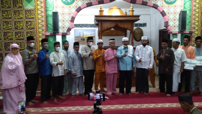 Pada kesempatan tersebut, Bupati turut memberikan bantuan, baik sarana dan prasarana Masjid, sehingga masyarakat nyaman selama melaksanakan ibadah.