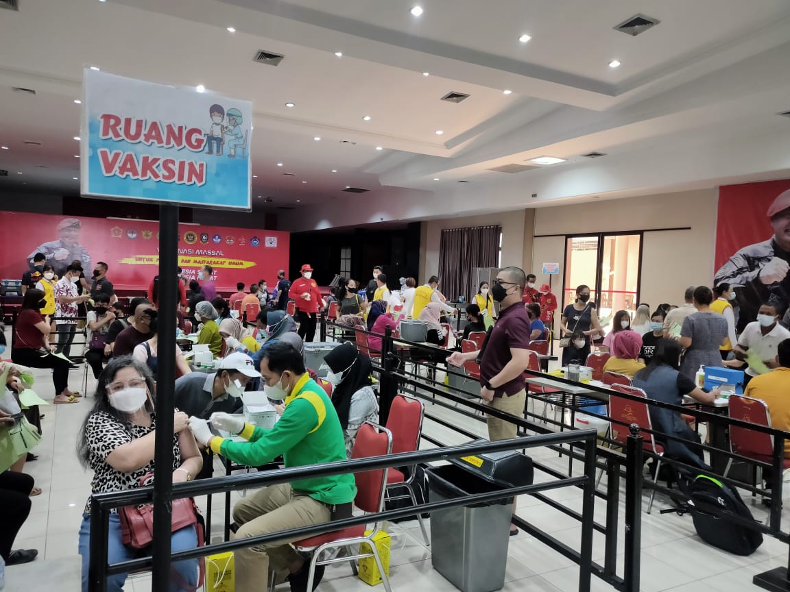 WARTAKEPRI.co.id, BATAM – Pembukaan gerai vaksinasi massal di Maha Vihara Duta Maitreya Kota Batam dipadati oleh masyarakat, pada Sabtu (23/04/2022). Ditargetkan sebanyak 6.000 orang masyarakat mengikuti vaksinasi yang digelar pada H-6 pelaksanaan cuti bersama Idul Fitri.