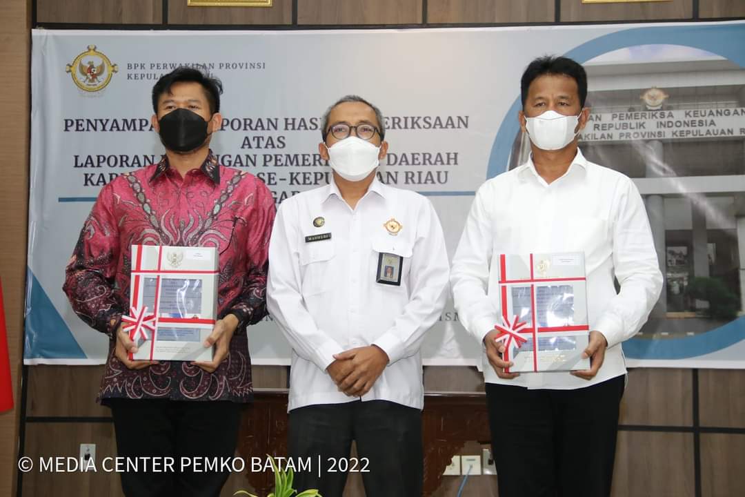 WARTAKEPRI.co.id, BATAM – Pemerintah Kota Batam kembali mendapat predikat opini Wajar Tanpa Pengecualian (WTP) untuk laporan keuangan pemerintah daerah (LKPD) tahun 2021. Hasil pemeriksaan atas LKPD tersebut merupakan WTP untuk yang ke 10 kalinya diraih Pemko Batam secara berturut.
