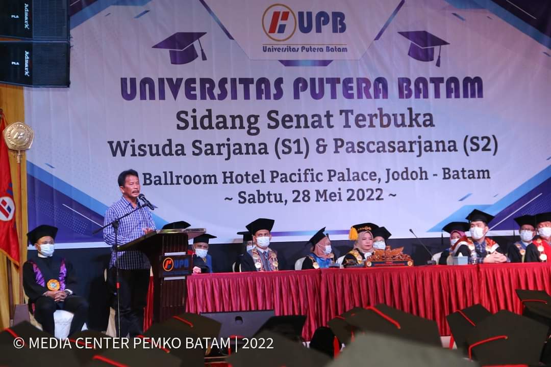WARTAKEPRI.co.id, BATAM – Wali Kota Batam Muhammad Rudi menghadiri acara Wisuda Universitas Putera Batam (UPB) di Pacific Grand Ballroom Lantai 4 Hotel Pacific Palace, Sabtu (28/5/2022) siang.