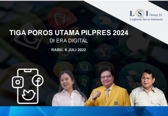 LSI Denny JA membagi simulasi pertarungan Pilpres 2024 menjadi tiga poros, yakni poros KIB dengan tokoh utama Ketua Umum Partai Golkar Airlangga Hartarto, PDIP dengan tokoh utama Puan Maharani, dan Gerindra-PKB dengan tokoh utama Prabowo Subianto. Dalam simulasi pertarungan ketiga poros di tiga kantong suara, KIB jauh mengungguli dua poros lainnya.