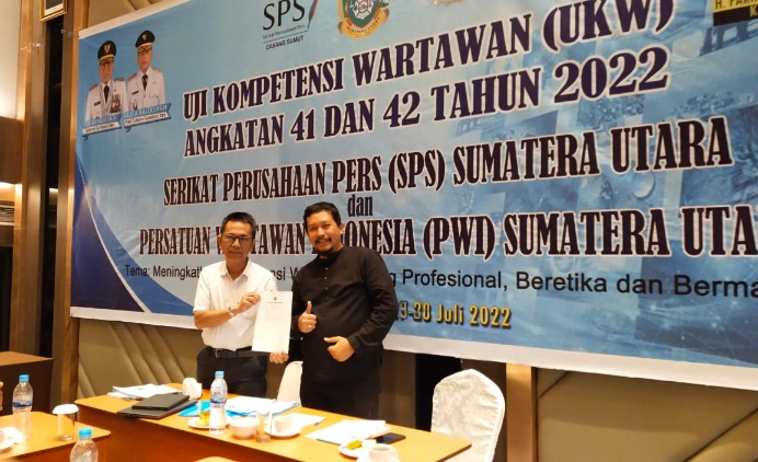 MEDAN – Direktur Uji Kompetensi Wartawan (UKW) PWI Pusat, Prof. Rajab Ritonga, secara resmi menutup UKW angkatan 41 dan 42 yang diselenggarakan SPS Sumut dan PWI Sumut di Hotel Le Polonia, Jalan Sudirman Medan, Sabtu (30/7/2022).