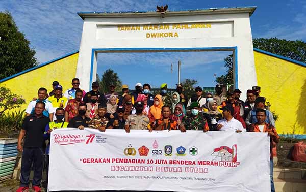 “Untuk hari ini gerakan 10 juta bendera dilaksanakan di kecamatan Bintan Utara yang dipusatkan di depan taman makam pahlawan Dwikora Tanjung Uban. Bendera merah putih telah disiapkan oleh petugas baik dari Polri, TNI, dan pemerintah kecamatan dengan berbagai ukuran, selanjutnya bendera merah putih tersebut diberikan kepada masyarakat pengguna jalan,” ujar Tidar.
