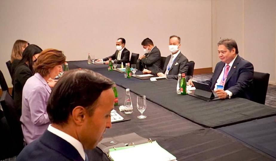Pada pertemuan tersebut Menko Airlangga menyampaikan bahwa Indonesia telah mendorong reformasi struktural melalui omnibus law UU Cipta Kerja, posisi strategis Indonesia selaku Presidensi G20 dan Ketua ASEAN pada 2023, juga perlunya dukungan AS terkait dengan masalah pangan terutama impor kedelai (soya bean) dari AS yang cukup besar.