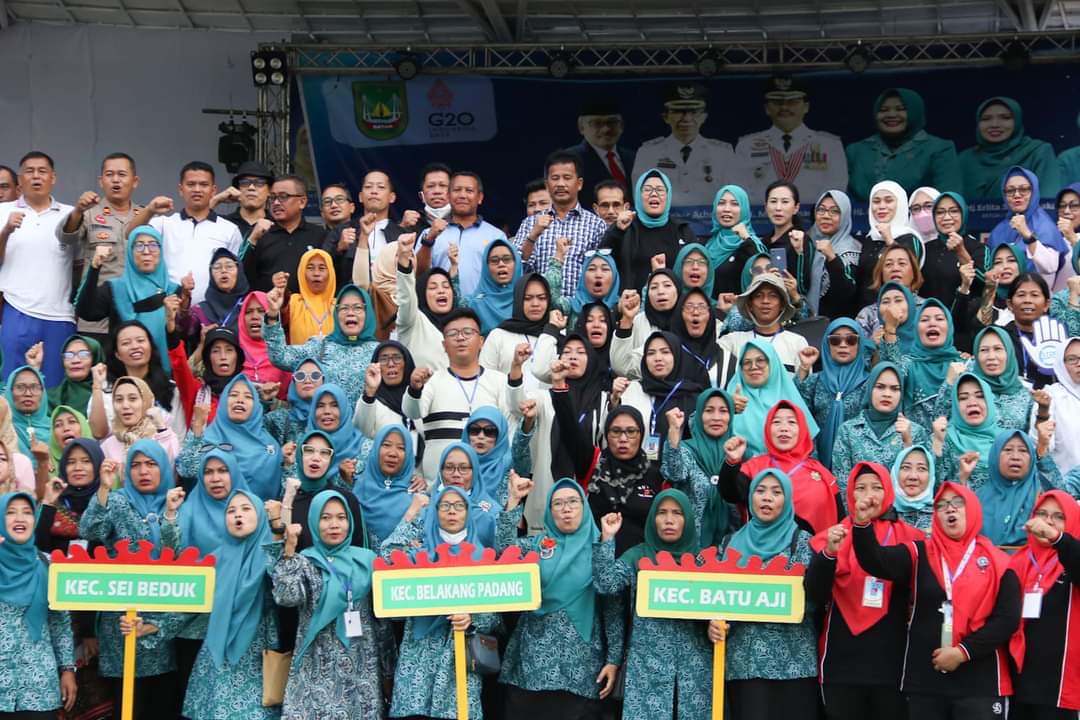 BATAM – Wali Kota Batam, Muhammad Rudi bersama Tim Penggerak Pemberdayaan dan Kesejahteraan Keluarga (TP-PKK) Kota Batam membuka Jambore PKK Kota Batam.