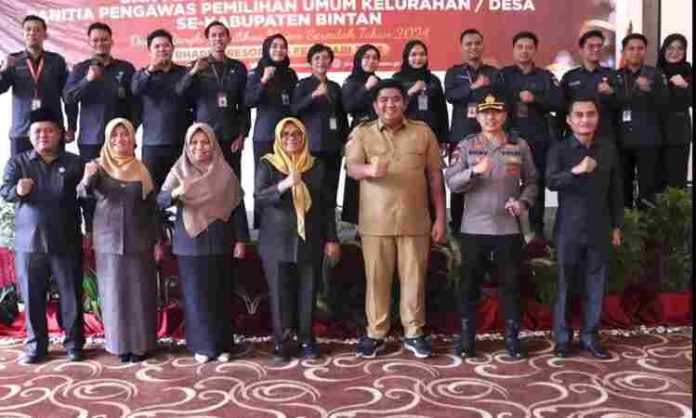 BINTAN – Panitia Pengawas Pemilu (Panwaslu) Kelurahan/Desa se Kabupaten Bintan resmi dilantik oleh masing-masing Ketua Panwaslu Kecamatan secara serentak di Convention Hall Hotel Bhadra Resort dan disaksikan langsung oleh Bupati Bintan Roby Kurniawan, pelantikan dan pengambilan sumpah ini berlangsung secara khidmat.