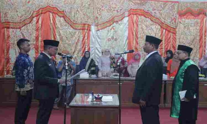 SUMBAR – Dewan Perwakilan Rakyat Daerah (DPRD) Kabupaten Pasaman Barat (Pasbar) menggelar Rapat Paripurna Istimewa DPRD Pasaman Barat dalam rangka Penggantian Antar Waktu (PAW) Dari Drs. Budi Nasko (Alm) dari Fraksi Golkar Kepada Drs.H.Yubdi. Pelantikan tersebut dilakukan oleh Ketua DPRD Pasbar Erianto, yang dihadiri langsung oleh Bupati Hamsuardi, Kamis (9/3) di ruang rapat gedung DPRD Pasbar.