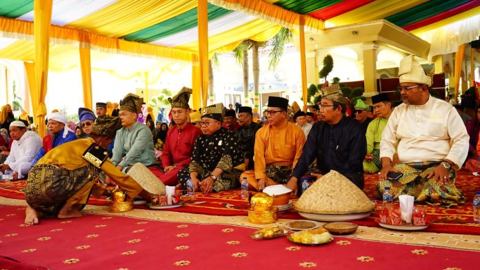Baik pejabat maupun masyarakat, semua duduk sama rendah dengan menyantap menu khas melayu.