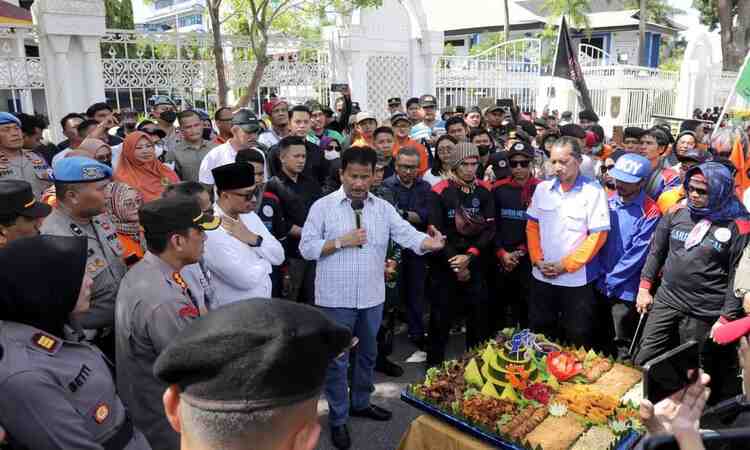 Rudi Beri Kejutan Kepada Para Buruh Yang Laksanakan Peringatan May Day 1 Mei di Depan Kantor Walikota Batam