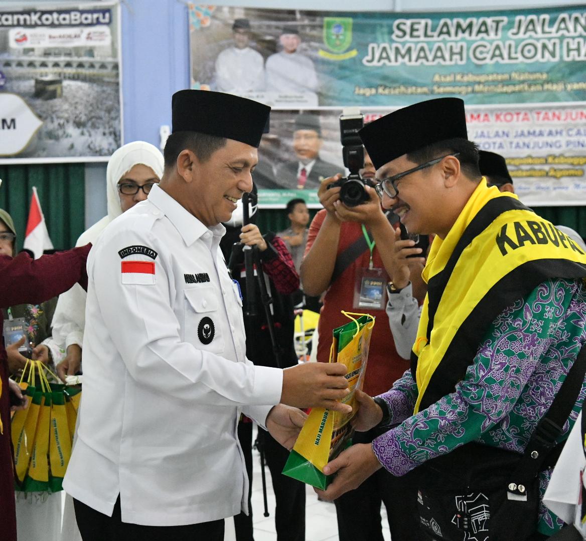 NATUNA – Gubernur Kepri H. Ansar Ahmad melepas secara resmi 363 jamaah calon haji (JCH) yang masuk Kelompok Terbang (Kloter) 1 Embarkasi Batam, bertempat di Aula Arafah 2 Asrama Haji Kota Batam, Rabu (24/5) dini hari.