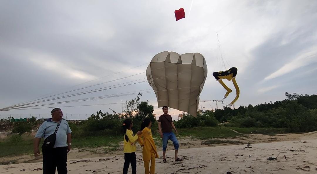 Langit pantai Kampung Ambat Jaya akan dihiasi dengan pelbagai macam jenis layangan, mulai dari tiga dimensi, tradisional, train atau naga dan rokaku.