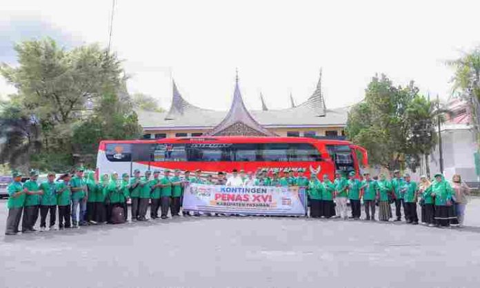Puluhan peserta asal Kabupaten Pasaman dilepas keberangkatanya oleh Bupati Pasaman H. Benny Utama guna mengikuti Penas Petani dan Nelayan ke XVI tahun 2023 yang dilaksanakn di kota Padang, di Gedung Syamsiar Thaib, Lubuk Sikaping, Jumat (9/6/2023).