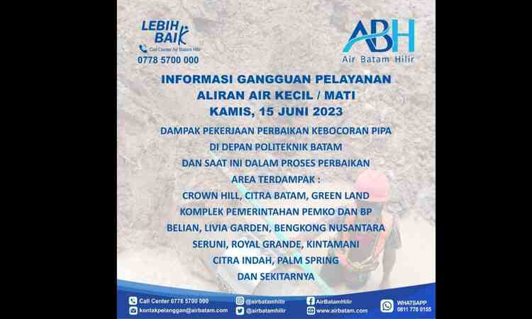 Area terdampak : Crown Hill, Citra BAtam, Green land, Komplek Pemerintahan Pemko dan BP Batam, Belian, Livia Garden, Seruni, Roya Grande, Kintamani, Citra Indah, Palm Spring, Bengkong Nusantara dan sekitarnya.
