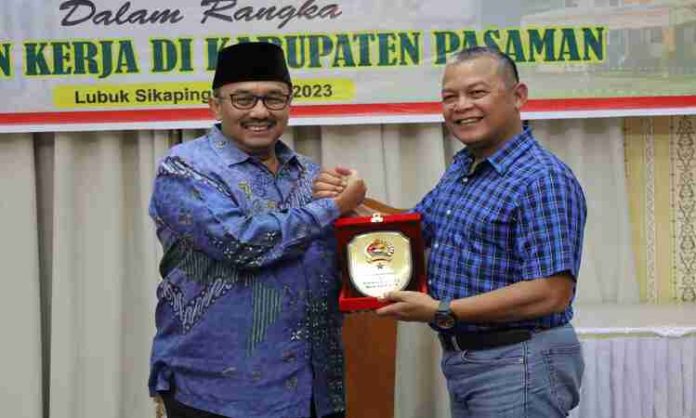 Dalam kesempatan tersebut juga diserahkan cendera mata berupa plakat dari Korem 032/Wrb kepada Bupati Pasaman dan Plakat lambang daerah Kabupaten Pasaman dari Benny Utama kepada Danrem.( r)