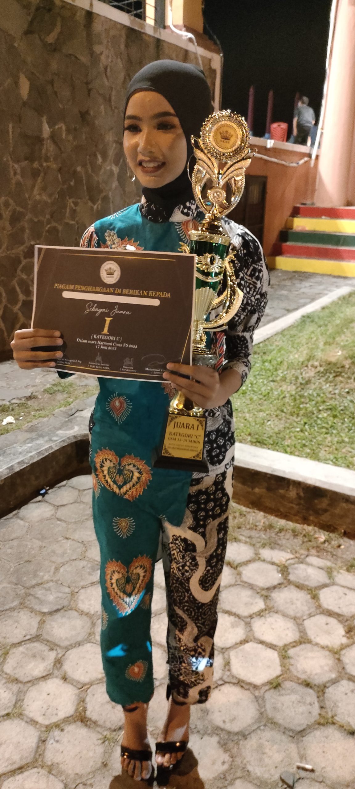 “Alhamdulillah, tentunya bahagia dan senang dapat menjuarai perlombaan fashion show ini,” kata Dwi Kurnia Ramadhani.