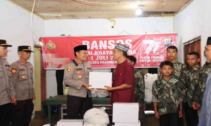 Penyerahan bantuan ini dilakukan oleh Kapolres Pasaman Barat AKBP Agung Basuki dan Ibu Ketua Bhayangkari Cabang Pasaman Barat Ny. Mutya Agung Basuki. Bantuan sosial diterima langsung oleh Ketua Pengurus Panti Asuhan Yayasan Aisyiyah Sungai Jernih Bapak Muhamad Naim.